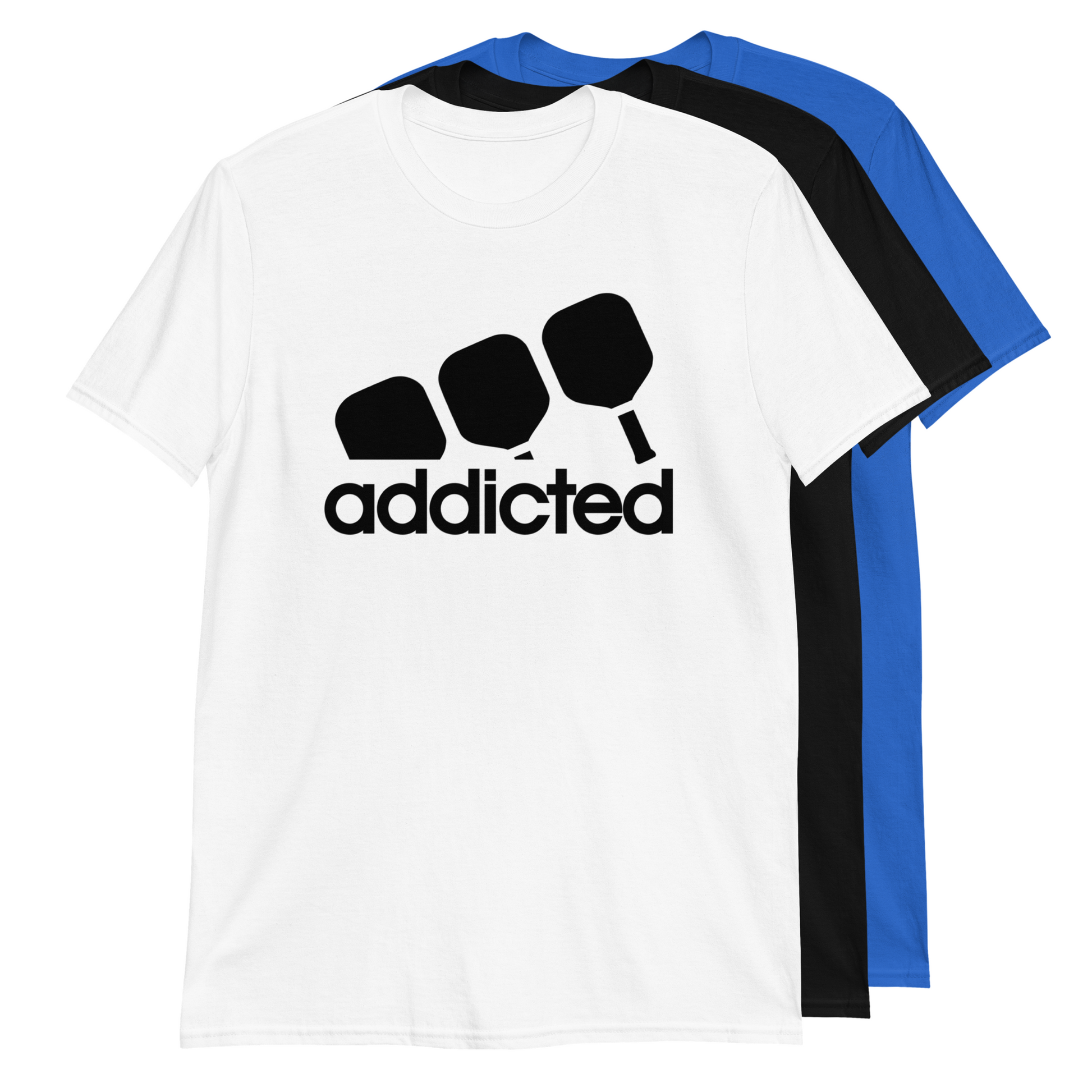 Created for anyone who is addicted to playing pickleball, this awesome addicted pickleball shirt features a unique "addicted" parody logo with pickle ball paddles. An excellent pickleball gift for the dink lover, pickle baller or passionate pickleball addict.