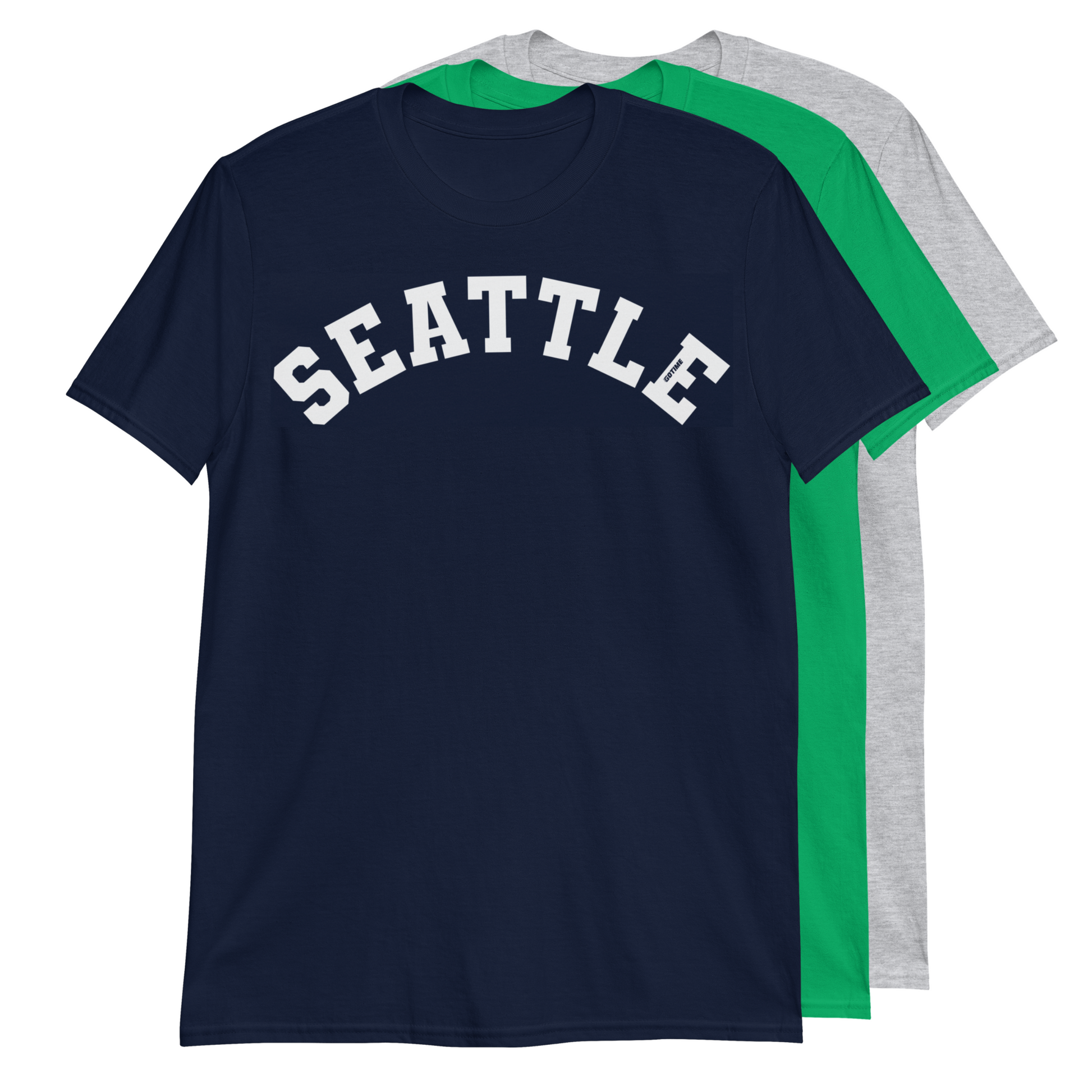 Rep Emerald City with this stylish, retro Seattle t-shirt featuring a classic Seattle arch design in vintage block letters. Comfortable and soft with a modern fit, it's an awesome way to express your love for the city and an excellent gift for those who love Seattle sports or anyone who is from the 206.