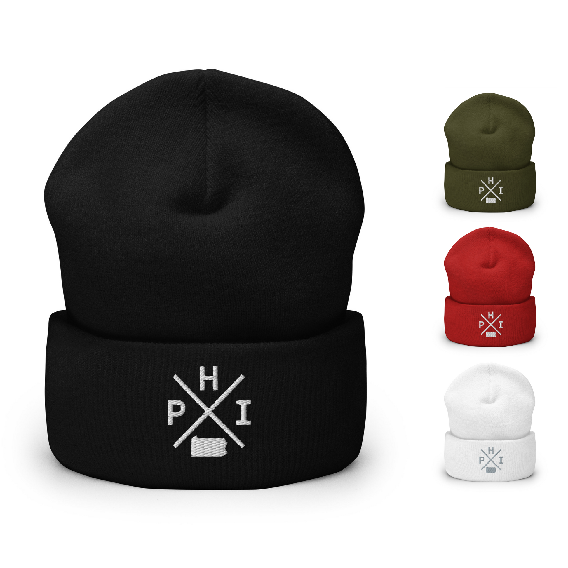 Comfy, stylish and warm, this retro Philadelphia beanie hat is an excellent choice for Philadelphia fans and anyone from Philadelphia, PA. Features an embroidered, vintage Philadelphia (PHI) cross design with Pennsylvania silhouette. An awesome Philadelphia gift or souvenir, this knit Philadelphia beanie cap is sure to be appreciated by fans of Philly.